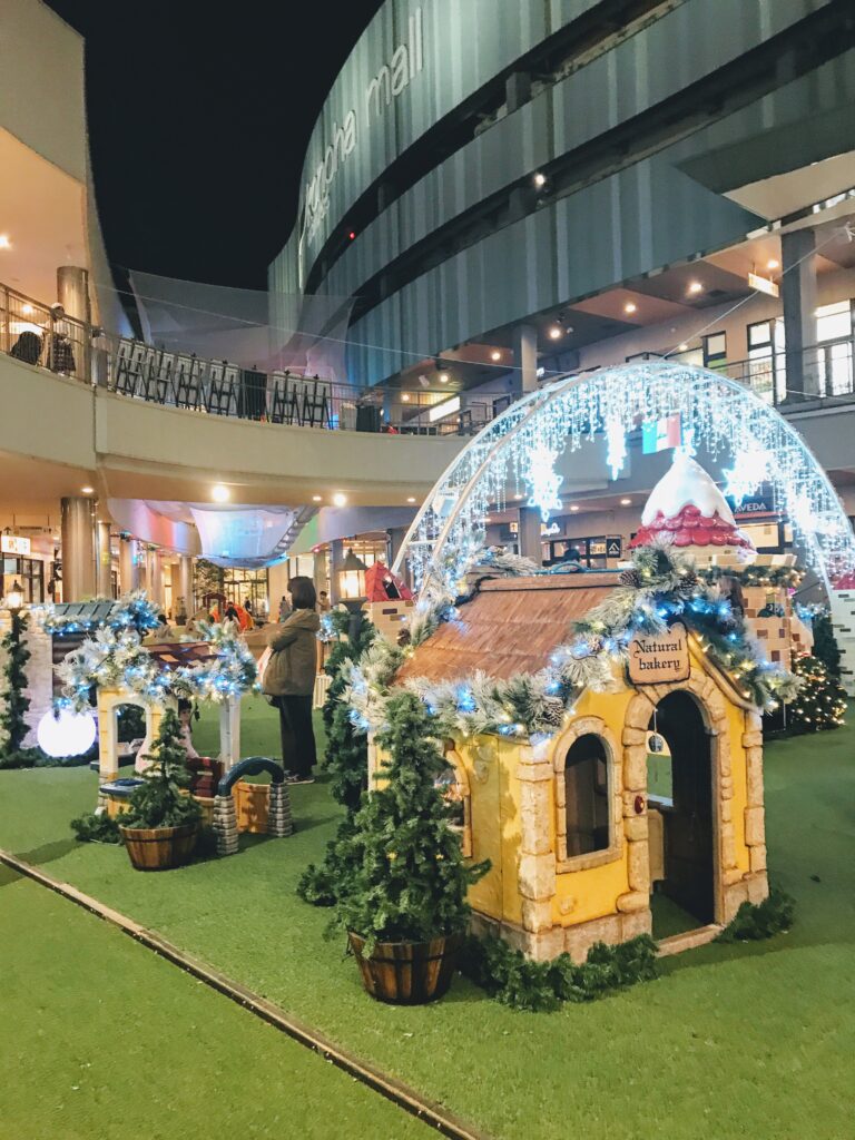 赤ちゃんの遊び場は12月からイルミネーション飾りがかわいい