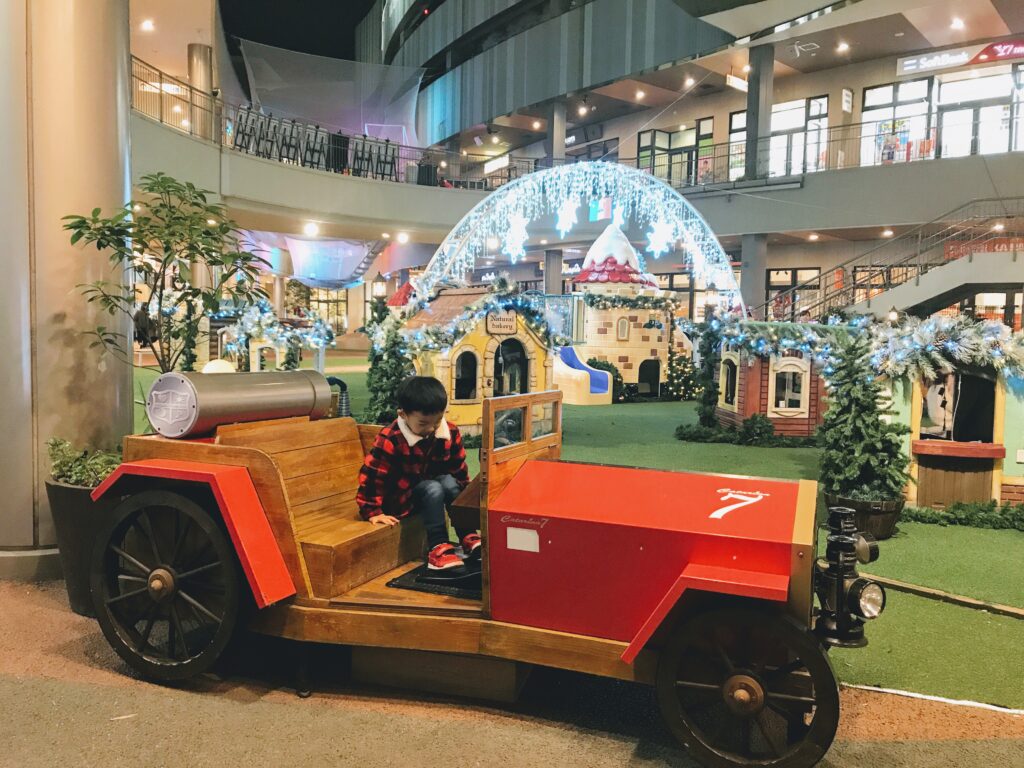 木の葉モールのイルミネーションは映えする場所が多く、上記の写真のような大きな車も展示されており、乗り降り自由です。